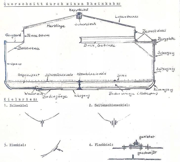 | Die wichtigsten Fachausdrücke der Binnenschiffahrt A – Aalschokker ,abmustern, abschalken (abschalmen), Achterondrer, achteruit (achteraus), Akkumulator, Ammoniakgas, Ankerlier (Ankerspill), Ankerwinsch, Assekuranz, Atmosphäre, Attest, ausscheren, außenbords, Axiometer, Azetylen B – Baakenmeester, bäcken, Bake, Ballast, Bändsel, Batterie, Bilge, Bleesbaken, Bö (böig), Boje, Brittel (britteln), Buchse (Büchse), Bugsprit, bugsieren, Bugstag, Buhne (Kribbe), Bullauge C – Chartervertrag, Chrom D – Dalben (Duckdalben), Dämsel (Demsel), Davit (Kranbalken), Deckkleid, Deckstopper, Deklaration (deklarieren), Dennebaum (Tennebaum), Dispascheur, Dolle, Döpper, Draggen, Draht, Drempel, Ducht, dwars, Dynamometer E – effektiv (Pse), Eichskala (Eichschale), Elevator, Elektrizität, enkel (enkele Boot), Exhauster, Expansion, Experte, Exzenter F – Fender, fieren, Flansch, Flieger (Nachen), flöten (fleuten), Franchise, Fretter (Kuhmaul, Schäkel), G – Geländer (Reling, Verschanzung), Generator, Geschirr, Gierfähre (gieren), Gräting H – Hall's Anker, Handöse (Ösfaß), Haspel, Havarie (Havarei), Helling (Helgen), Helmstock, Herft, hieven, Hypothek I – Indikator (indizieren (Psi)), Ingenieur, Inspektor, Inventar, J – Jacht, Jolle K – Kai, Kajüte, kalfatern, Kapazität, Kappdeckel, Karwel, Kasko, Kattekopp (Katzenkopf), Kattespor (Bodenwrange), Kausch, Kempenaar, Kimm, klarieren, Klinker, Klippanker, Klüse, Kocher ( Koker), Kohlteer, Kollosion, Kombüse, Kondensator, Konnossement, Konstruktion, Kortdüse, Krampe, Kran (Kranenbalken) L – Längsstringer, Lateralfläche, Leckage, Leckkleid, Lee, Leinenschnäpper, Lier, Lotse, Luke (Lukendach), Luv M – meeren (mähren), Mahagoni, Manifest, Manko, Manometer, manövrieren, Meerdraht, Menage, Mennige, Merklinge, Metazentrum N – Nabe, Naht, Nehrstrom (Neerstrom), Nuß O – Ohring P – Palstek (Pahlstek), Partikulier, Passagier, passieren, Patent, Penische, Persenning, Piasavebesen, Pick (Kabelgatt), Pier, Pitschpine, Plattling, Pleuel, Plicht (Plecht), Poller, Ponte, Ponton, Positionslaterne, Prahm, Propangas, Propeller, Pülz (Pütze, Püls), Q – Quadrant, Quarantäne, Quast R – Raa, rack (racken), rank, Reede (Reederei), Reibholz, Reparatur, Revision, Ritzel (Rundsel, Runzel), Roef, Ruff S – Schalkkleid, Schlupp (Schaluppe, Slupp), Scheg (Schegg), scheren (Scherstock), schiffisch, Schlaggerte, Schlepphaken (Schleppbock), Schmelzer, Schmöller, Schorbaum, Schrubber, schwaien (schwoien), Sektionsbau, semmen, Sonnentent, Speigatt, Spill, spleissen, Sprenkel, Stabilität, staken, Steven, stiefeln, Strang, Strau, Stropp T – tauen, Teer (teeren), Teakholz, Tjalk, Topp, törnen, treideln, Turbine, Turnen V – Vibration, Voith-Schneider-Propeller, Verbunddampfmaschine, verholen W – Wahrschau, Wasserwiderstand, Werth, wriggen (wricken) Z – zeisen, zwerch, Zwiebel | |